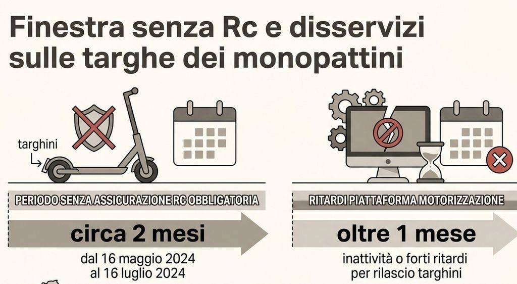 Mimit e Mit concedono due mesi in più per l'assicurazione Rc auto dei monopattini che scatta quindi come obbligo il prossimo 16 luglio. Perplessi i consumatori e gli operatori del settore. I primi temono aumenti delle nuove polizze. Assosharing punta invece il dito sul fatto che non sia stato pensato analogo slittamento per le targhe stigmatizzando il caos nella pubblica amministrazione.